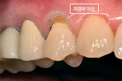 잇몸 치료를 통해 제거하고 잇몸 재생을 통해 치수의 민감성을 감소시킵니다.