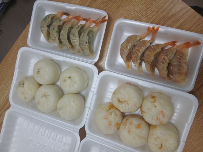 환자분께서 정성스럽게 종류별로 만두를 사오셨어요